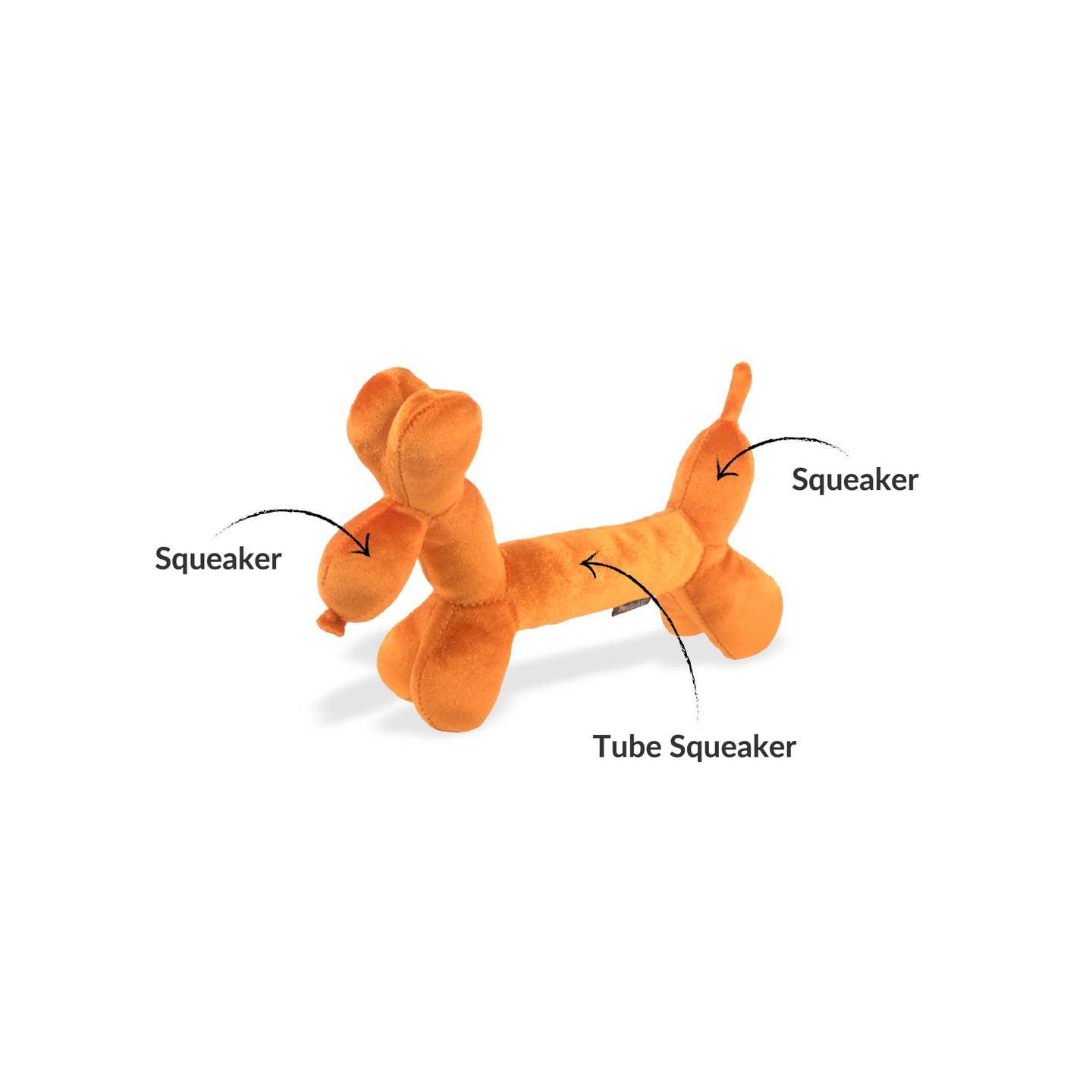 • Perfect for small to medium dogs • Designed with squeakers in the nose and tail plus a tube squeaker inside the body for extra-loud, bouncy fun • Hand-made craftsmanship, double layer exterior and reinforced stitching for extra durability • Stuffed with our signature eco-friendly PlanetFill® filler made from 100% post-consumer certified-safe recycled plastic bottles • Machine washable and dryer friendly • Free of harmful AZO dyes • All of our toys meet the same strict quality standards for manufacturing infant and children products. Meet requirements for EN71