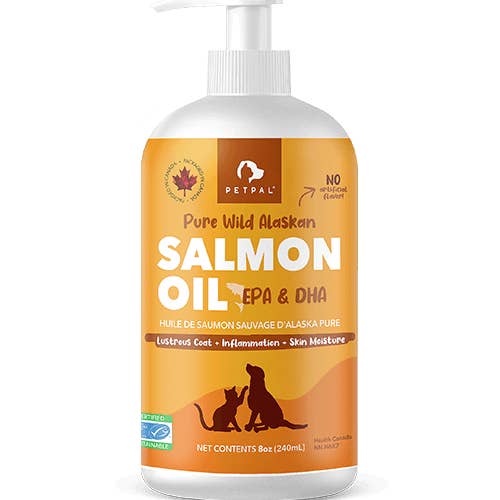 Keep your pup’s health in tip-top shape by including salmon oil into their daily routine. As an abundant source of Omega-3 and Omega-6 fatty acids, salmon oil synergistically tackles allergies, skin and coat health, joint pain, and much more to keep your dog feeling good all around! Ingredients: 100% Wild Alaskan Salmon Oil Made from 100% Alaskan salmon. Pure, and free of synthetic, artificial ingredients, or dilutants. Every batch is blended to ensure nutritional consistency across all bottles. No salmon is fished for the sole purpose of making the oil. Feeding Guide: Up to 10lbs: 1 pump per day Up to 20lbs – 30lbs: 3 pumps per day Up to 30lbs – 40lbs: 4-5 pumps per day Over 50lbs: 6-8 pumps per day